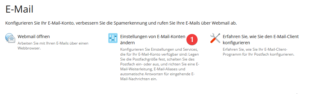 - Öffnen Sie anschließend den Bereich „Einstellungen für E-Mail-Konten“ (1).