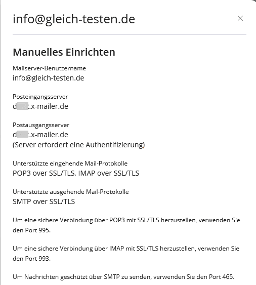 Hier sehen Sie den Posteingangs- und Postausgangsserver, der in Outlook verwendet werden muss.