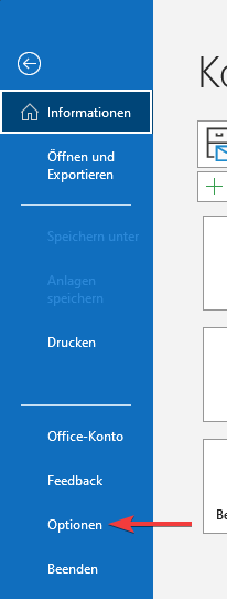 2. Klicken Sie nun im Menü auf “Optionen”.