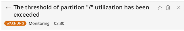 Sie erhalten eine E-Mail oder einen Alarm in der Plesk Oberfläche. Es wird auf die Überschreitung eines Limits aufmerksam gemacht. Dies kann z.B. RAM, CPU, Swap, Speicherplatz oder ähnliche Ressourcen betreffen.