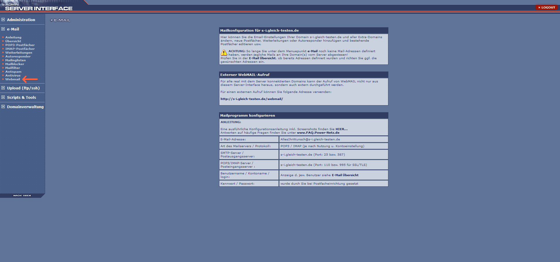 Loggen Sie sich in das Server Interface ein und klicken Sie auf “E-Mail”: