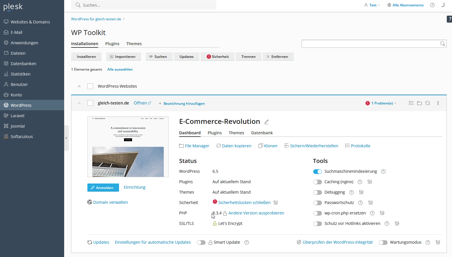 Weitere Informationen finden Sie im Plesk-Handbuch.