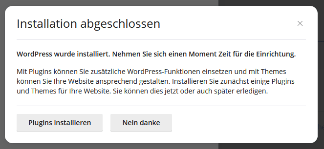 Somit ist die WordPress-Instanz erfolgreich installiert.