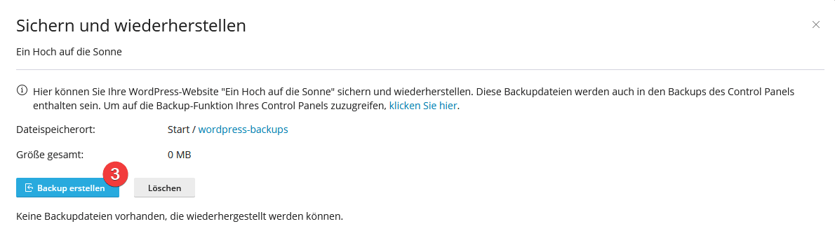 Klicken Sie hier auf “Backup erstellen” (3):