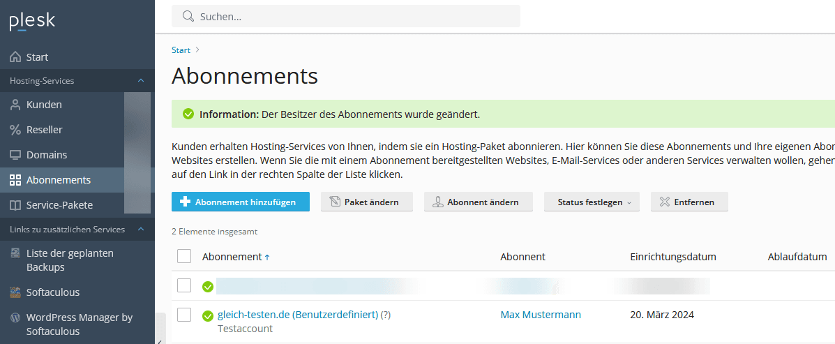 Daher müssen Sie nach der Migration von Accounts Ihre Kunden neu anlegen und diesen die Abonnements (unter welchen sich die Domains befinden) zuweisen.