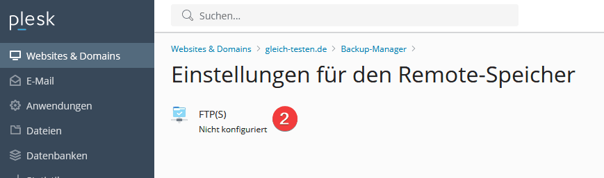 Wenn Sie als Speicherort den FTP-Backupspeicherplatz verwenden möchten, ist es erforderlich, dass Sie den FTP-User im Backup-Manager hinterlegen.